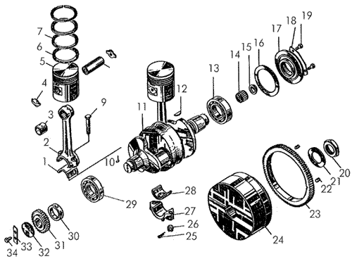 Кривошипно-шатунный механизм пускового двигателя Т-170