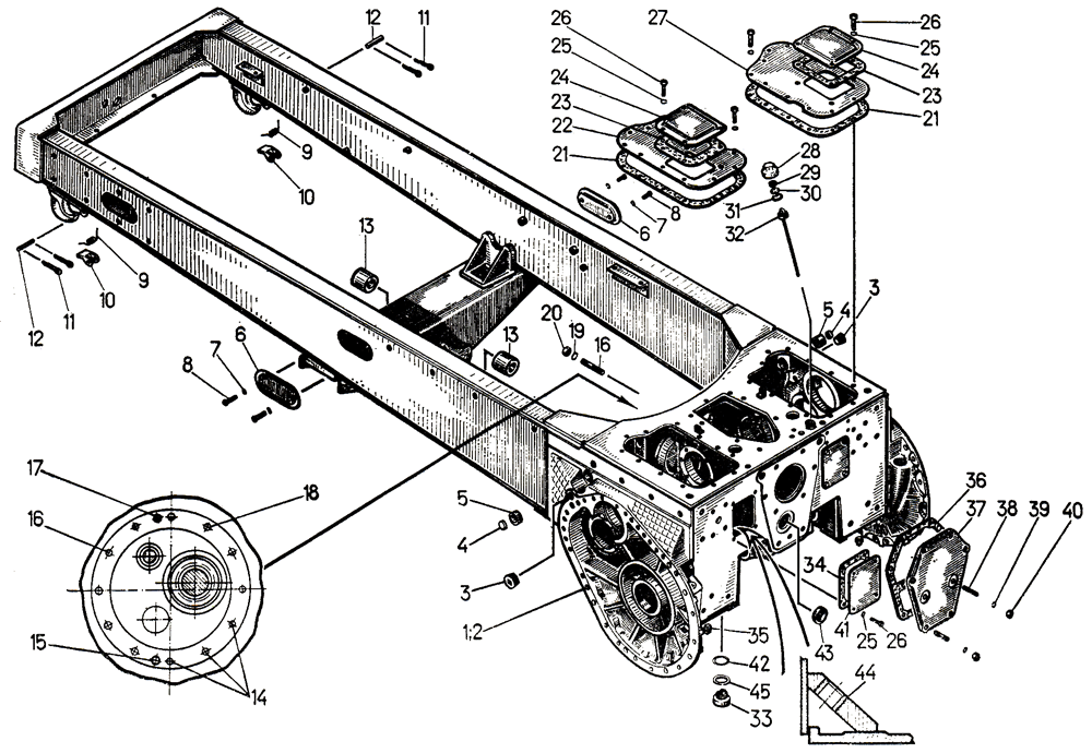 Корпус бортовых фрикционов с деталями трансмиссии на Т-130