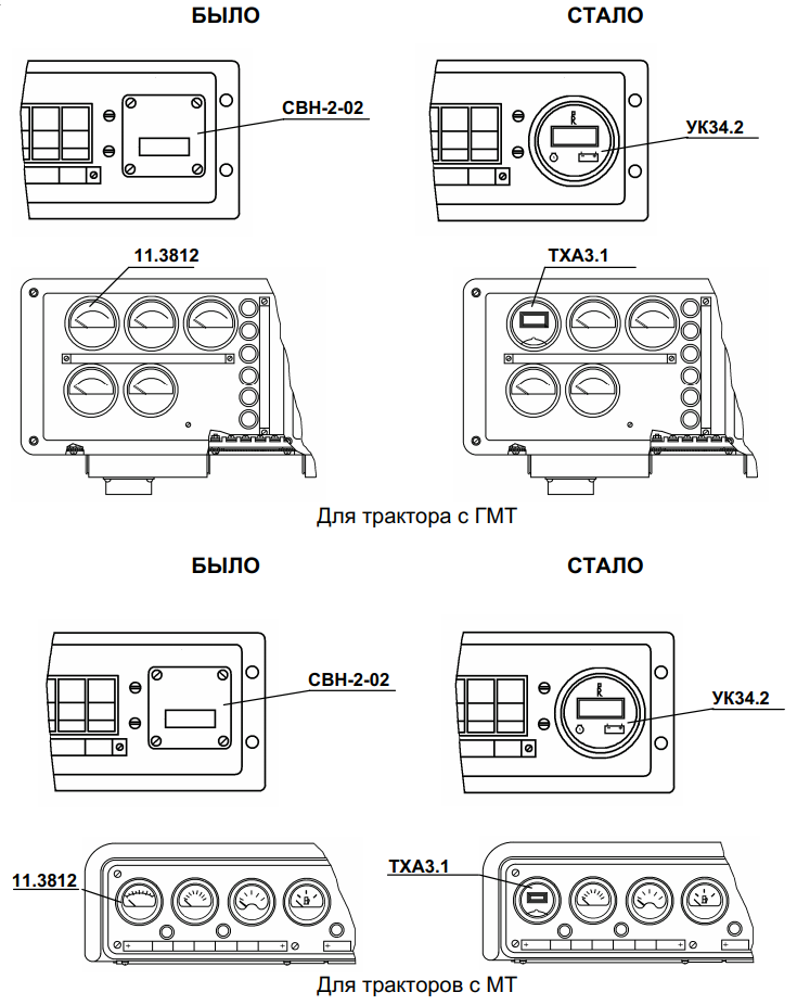 С целью унификации моделей тракторов устранены различия в составе тракторов, предназначенных для агрегатирования бульдозерным оборудованием, и тракторов, предназначенных для агрегатирования бульдозерно-рыхлительным оборудованием. В связи с этим исключены модели тракторов с индексом «-1». Жесткое и маятниковое прицепные устройства введены в состав тракторов по требованию потребителя.