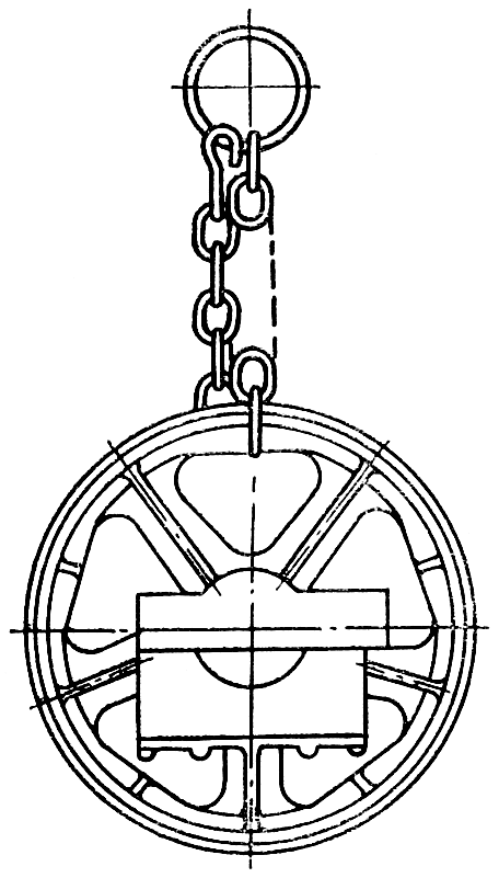 Прикрепите колесо к подъемнику (рис. 290 ) и выведите его из рамы тележки, поддерживая плиты 7 ( рис. 291 ). Масса колеса 240 кг.