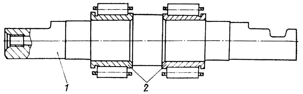 Рис. 281. Ось опорного катка с внутренними кольцами роликоподшипников
