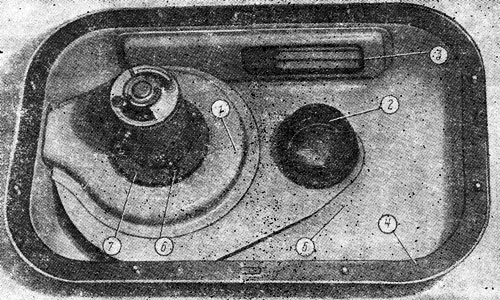 Соберите верхнюю половину кожуха 13 ( см. рис. 308 ) теплообменника с плитой 9, фланцем 11 и двумя планками 12 и совместите отверстия в них. Наденьте на четыре болта 6 шайбы, вставьте болты в совмещенные отверстия и соедините детали, закрепив четырьмя гайками с пружинными шайбами. Установите корпус 5 в сборе с тягой, заслонкой на плиту 9 и закрепите его двумя болтами 4 с гайками и пружинными шайбами. Установите на кожух отопителя 5 ( см. рис. 311 ) уплотнение 3 и прокладку 4. В кожух отопителя 5 установите 18-57-103СП вентилятор-пылеотделитель 1, на электродвигатель -вентилятора наденьте две прокладки 7 и четыре втулки 6. Наденьте резиновый патрубок 2 на кожух вентилятора. Установите на кожухе отопителя 8 ( см. рис. 308 ) плиту 9 с собранным корпусом 5 и верхней половиной кожуха 13 теплообменника. Соедините резиновый патрубок 7 вентилятора с фланцем 11 на плите. Наденьте на электродвигатель 5 ( см. рис. 310 ) вентилятора две прокладки 7, на болт электродвигателя провод массы 10 и закрепите вентилятор-пылеотделитель на плите 6 восемью гайками с контргайками 8, двумя планками 9. Наденьте на болты кожуха отопителя прокладку 2. На отводящие и подводящие трубки радиатора 3 наденьте прокладки 1 и установите радиатор в верхнюю половину кожуха теплообменника, Прикрепите крышку 4 кожуха теплообменника восемью болтами 11 с гайками, плоскими и пружинными шайбами.
