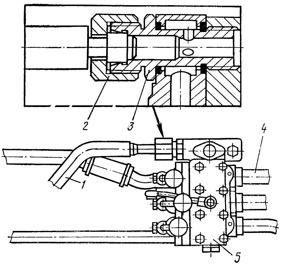 Установите обратный клапан 5 ( см. рис. 329 ) в отверстие корпуса 4 и легкими ударами обстукайте его до появления равномерного кольцевого пояска на конусной поверхности клапана. Установите пружину 6 в отверстие клапана и уплотнительное кольцо 7 в выточку корпуса. Установите крышку 8 и закрепите четырьмя болтами. Момент затяжки болтов 30...50 Н-м (3...5 кгс-м). Установите в кольцевые проточки корпуса 4 уплотнительное кольцо 9 и 10, вставьте штуцер 3 и вверните его в корпус 1 распределителя. Закрепите корпус 4 двумя болтами. Момент затяжки болтов 30...50 Н-м (3...5 кгс-м).