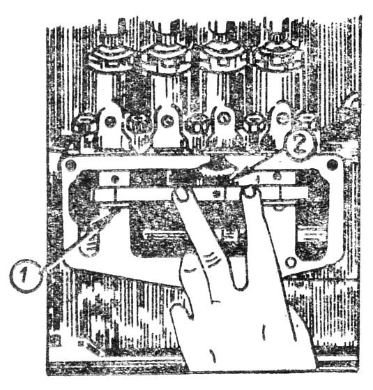 Поверните зубчатые секторы вместе с плунжерами так, чтобы зуб с меткой 2 ( рис. 155 ) на каждом секторе риской был обращен в сторону рейки насоса. Поставьте рейку насоса, совмещая зубья с меткой каждого сектора с риской на впадинах зубьев рейки, и введите в зацепление с секторами.