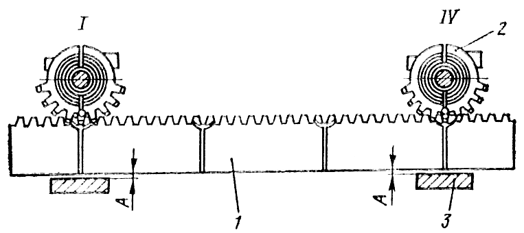 Рис. 155. Установка рейки и зубчатых секторов по меткам