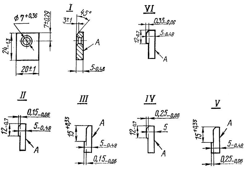 А — место обозначения номера варианта; I — вариант 1; II — вариант 2; III — вариант 3; IV — вариант 4; V — вариант 5; VI — вариант 6