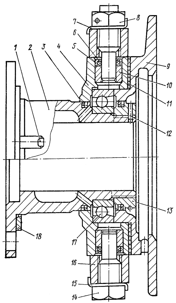 Запрессуйте в корпус подшипника две втулки 10 и установите уплотнительные кольца 6 с заглушками 5. Заполните полость шарикоподшипника 17 смазкой Литол-24 и запрессуйте его в корпус 4 подшипника.