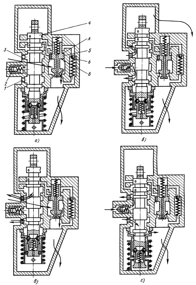 Самовключение золотника Засорилась дренажная трубка, присоединенная к верхней крышке распре­делителя Продуть трубку